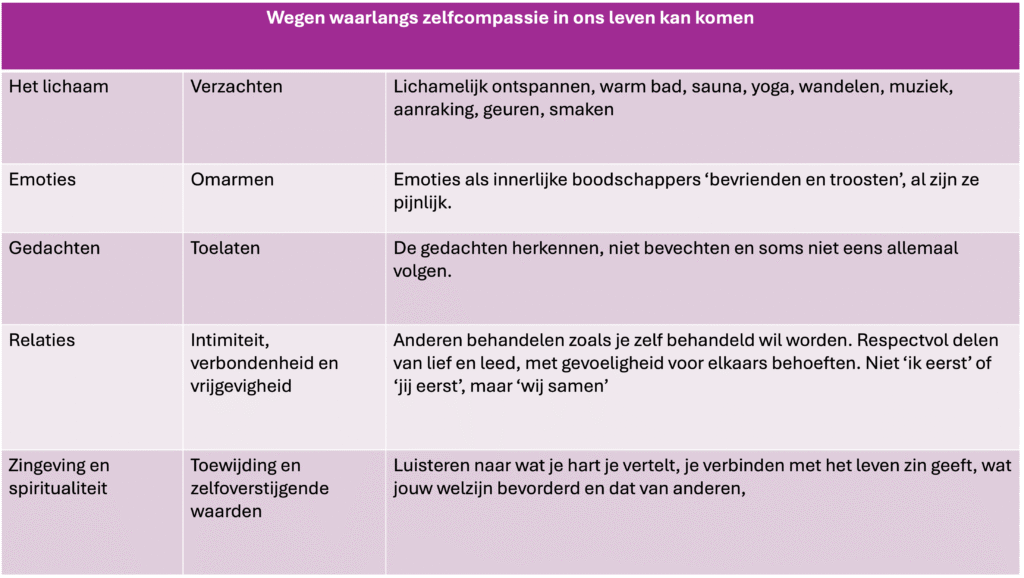 * Zelfcompassie helpt ons om in plaats van het gevaarsysteem, het kalmeringssysteem aan te spreken wanneer we pijn of stress ervaren.
